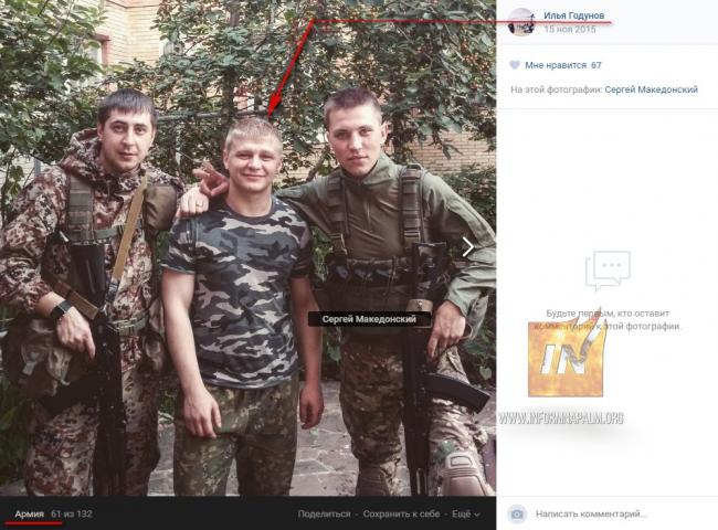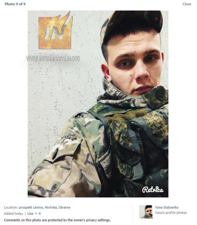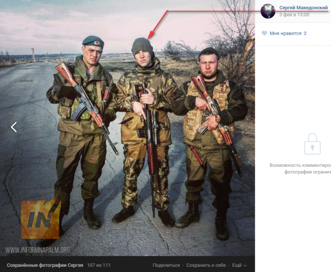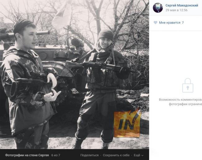 Слева, Шелудько Сергей Сергеевич (в соцсетях скрывается под псевдонимом Македонский), 14 Июнь 1992 г.р., уроженец города Горловки. Адрес: Горловка, ул.Корчагина, 26, кв.66. Сепаратист-снайпер.