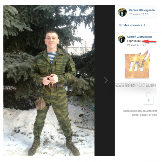 Скорее всего, когда Сергей Танцюра уже выехал с оккупированной части Донбасса, хранить молчание, не похваставшись «подвигами», не смог. 21 июля 2016 года к одному из своих фото он оставляет комментарий- «Горловка)». (Фото в архиве: от 01 февраля 2016г., где фамилия еще Танцюра и от 03 сентября 2016г., фамилия уже изменена на Шамурзаев)