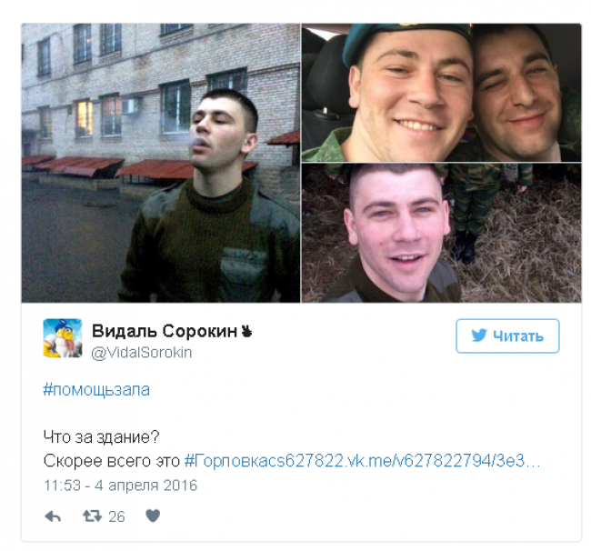 И опять снимок на фоне окна, заложенного мешками такой же раскраски как и на фото выше у Сергея Танцюры. Таким образом, группа из ГРУ ВС РФ была в Горловке, как минимум, с января по март 2016 года.