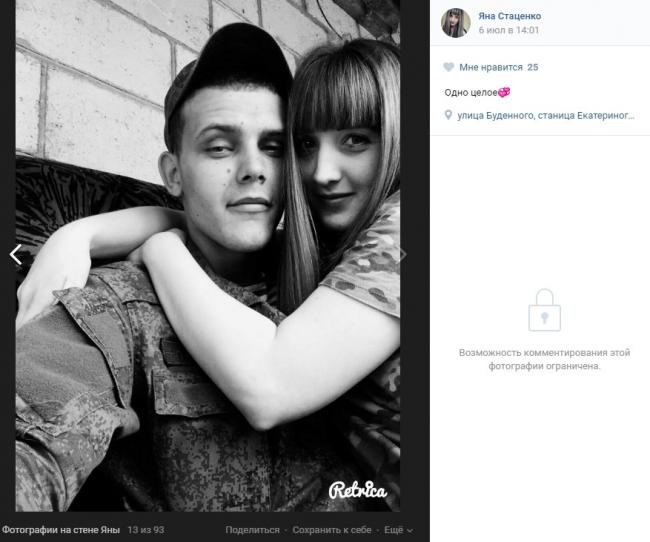 Недавнее фото Максима Дегтяренко с женой в н.п. станица Екатериноградская, что всего в нескольких километрах от н.п. Прохладный, где находится в/ч 31681, место постоянной дислокации 346-й ОБрСпН ГРУ.