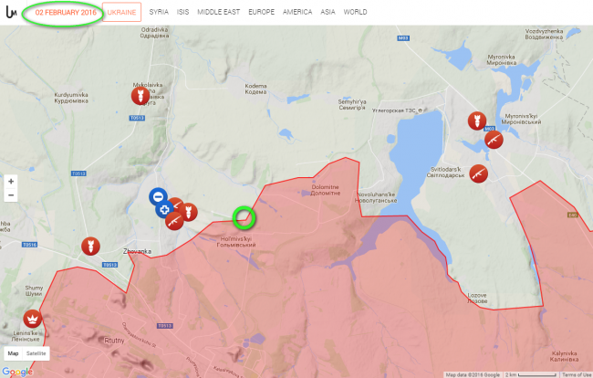 Зеленым кругом отмечено место на карте сайта liveuamap.com
