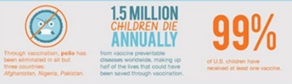 Благодаря вакцинации полностью исчез полиомиелит (везде, кроме трех стран: Афганистан, Нигерия, Пакистан). На самом деле есть еще и в Индии.