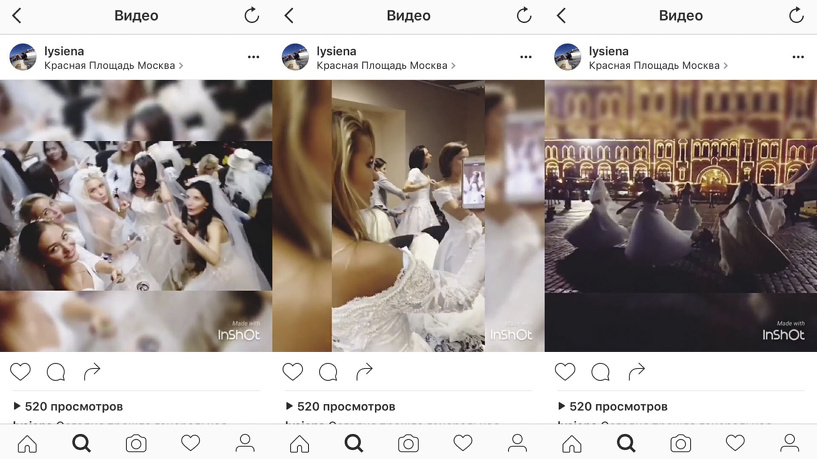 На странице еще одной участницы съемки на Красной площади, девушки под именем @lysiena, можно найти фотографии и видео с другими «невестами». А вот «женихов» нет ни на одном снимке. |