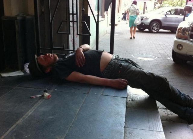 Когда патрульные приехали на место, то увидели на лестнице магазина мужчину, который спал. Рядом с ним находился пакет. Инспекторы разбудили мужчину и проверили его и пакет. Во время поверхностной проверки обнаружили, что в пакете находится растительное вещество сродни наркотическому, а также бумажный сверток с таким же содержанием.