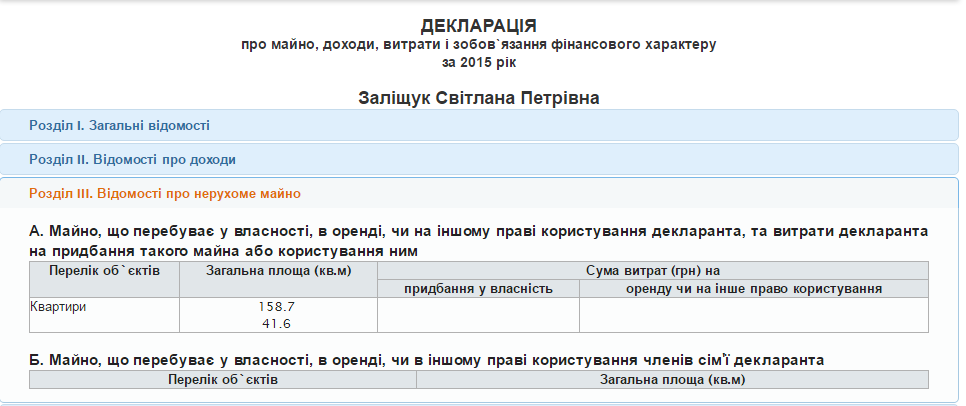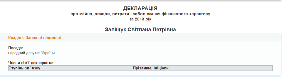 В свою очередь Светлана Залищук объяснила, что ее гражданский муж появился в декларации о доходах за 2015 год, поскольку в украинском законодательстве в предыдущие годы не надо было указывать партнера, если "вы не женаты официально". Кроме того, она добавила, что указала мужа в налоговом документе по собственному желанию.