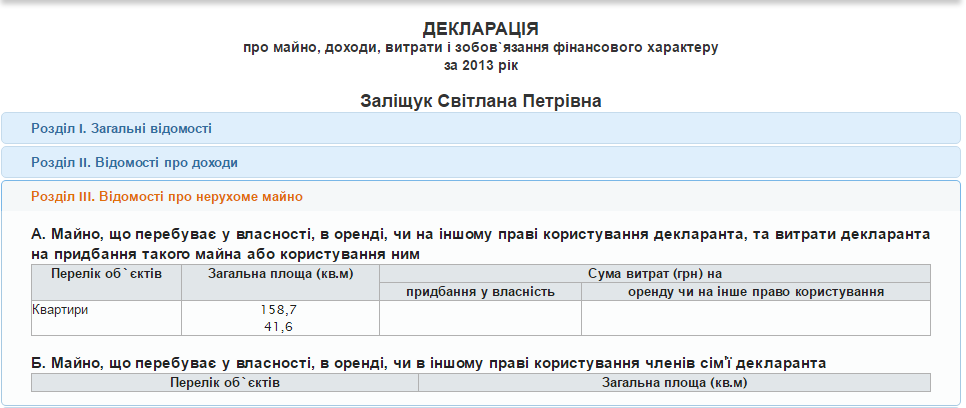 В декларации парламентария от "Блока Петра Порошенко" Светланы Залищук гражданский муж появился на два года позже, чем купленная им квартира за 13 миллионов грн.