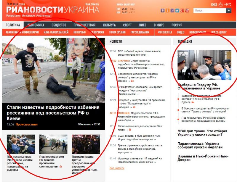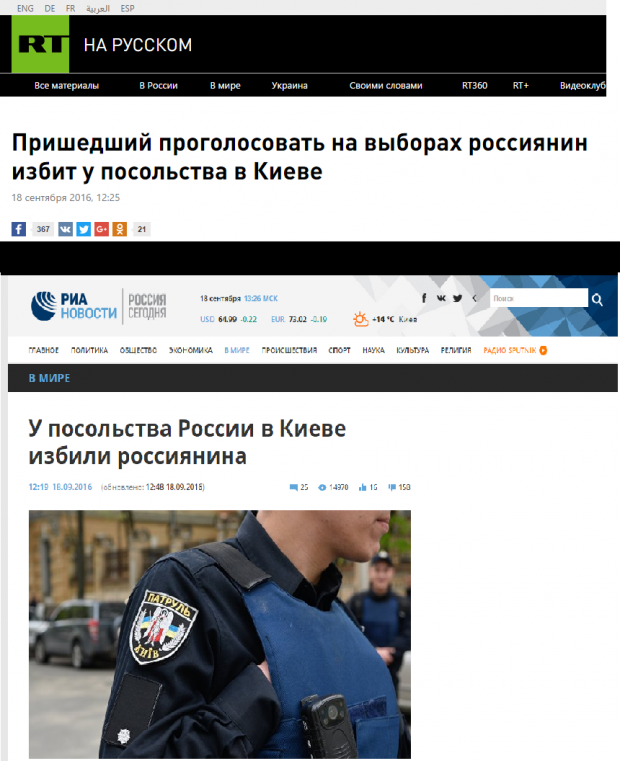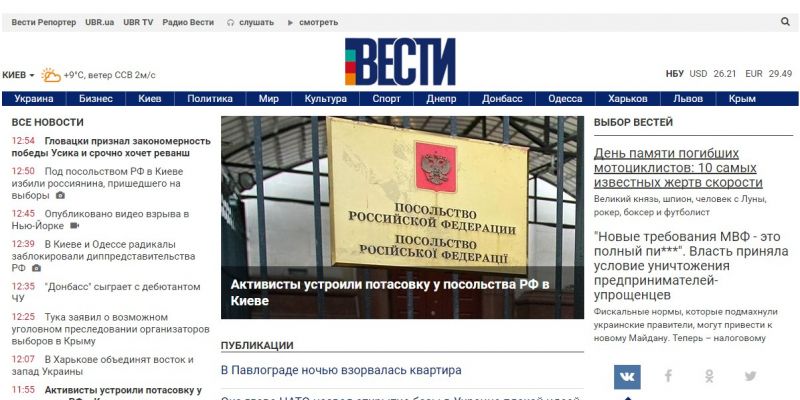 Мордорские «РИА Украина» и «Вести» посвятили происшествию первые полосы: