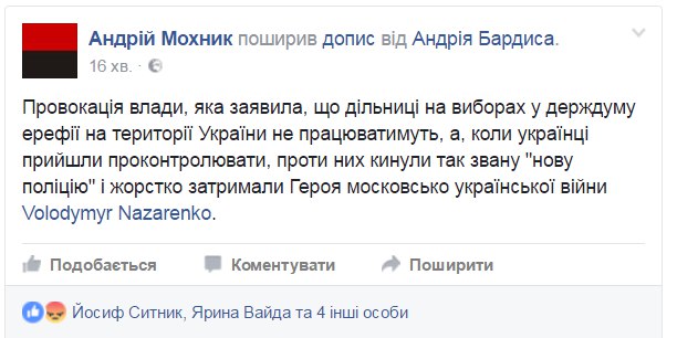 Там под Посольством РФ задержали депутата Киевсовета, ветерана АТО, Владимира Назаренко. Казалось бы: человек пришёл проконтролировать, как Украина поддерживает запрет на проведение выборов в Госдуру РФ, однако есть в этой истории какой-то неуловимый знакомый запашок... Ладно, давайте честно: смердит от неё так, что блевать тянет.