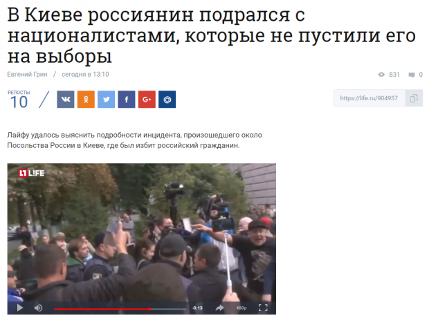 Однако мне кажется, что акция скорее была направлена на внутреннее расшатывание - обратите внимание на заголовки. С одной стороны «В Украине, несмотря на запрет, проходят выборы». Мол, Украина себе кочерыжится, запрещает, а на деле нифига не выходит.