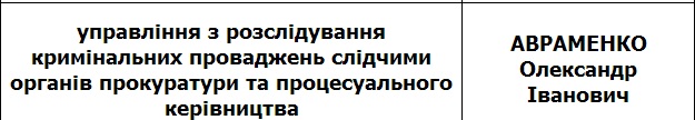 Помимо ротации в первом следственном отделе столичной прокуратуры сменился и руководитель следственного управления надзорного ведомства Киева в целом. В результате, в кресло начальника управления по расследованию уголовных производств следователями органов прокуратуры и процессуального руководства прокуратуры Киева сел бывший заместитель прокурора столицы Александр Авраменко.