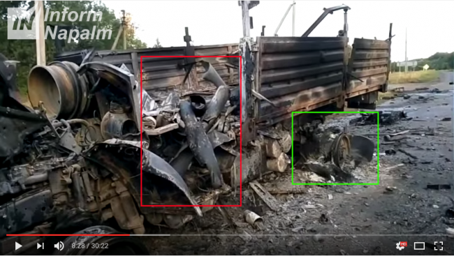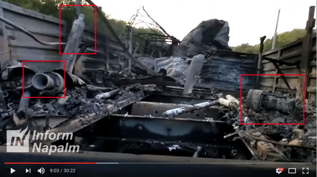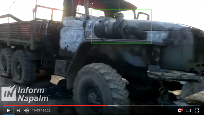 На одном из кадров сгоревшей колонны запечатлена осколочная граната ОГ-7В «Осколок» для гранатомета РПГ-7 (состоит на вооружении РФ, в Украину не поставлялась).
