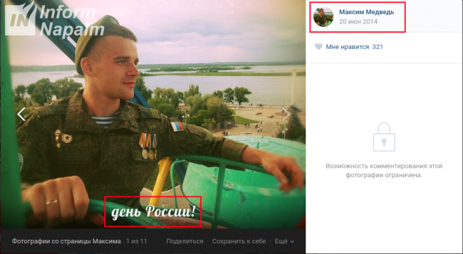 В мае 2014 года военнослужащим выдали форму нового образца в которой Максим сфотографировался 12 июня на день России. Плюс на снимке фигурирует медаль «За возвращение Крыма». Разорвал контракт, бросил молодую жену и уехал на Донбасс в ополчение?