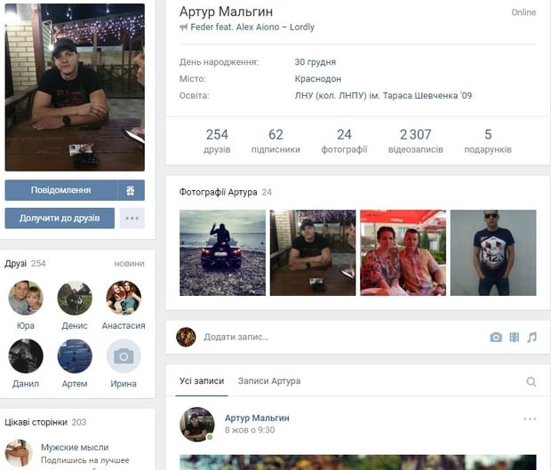 Кстати, у Влада есть старший брат. Его зовут Артур Малыгин, и 30 декабря ему исполнится 29 лет. В отличие от младшего, Артур остался «управлять делами» на оккупированной территории – вместе с супругой он живет в Краснодоне Луганской области. Если не считать пары фотографий с тусовок, Артур Малыгин живет как обычный местный гопник – ездит на Lada-седан и выкладывает в Сеть фотографии Lexus с номерными знаками «Донбасс».
