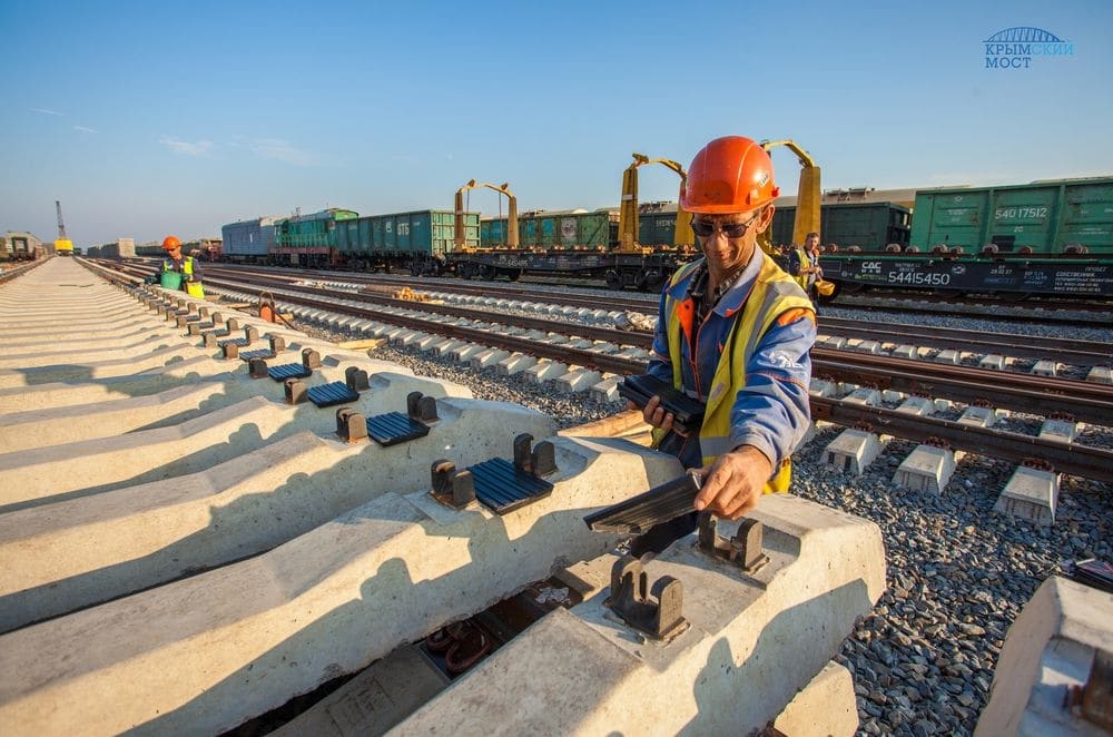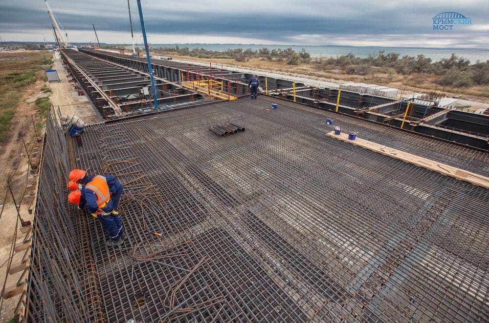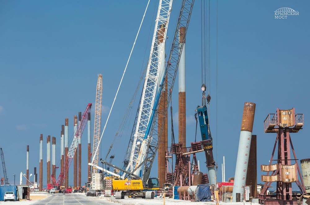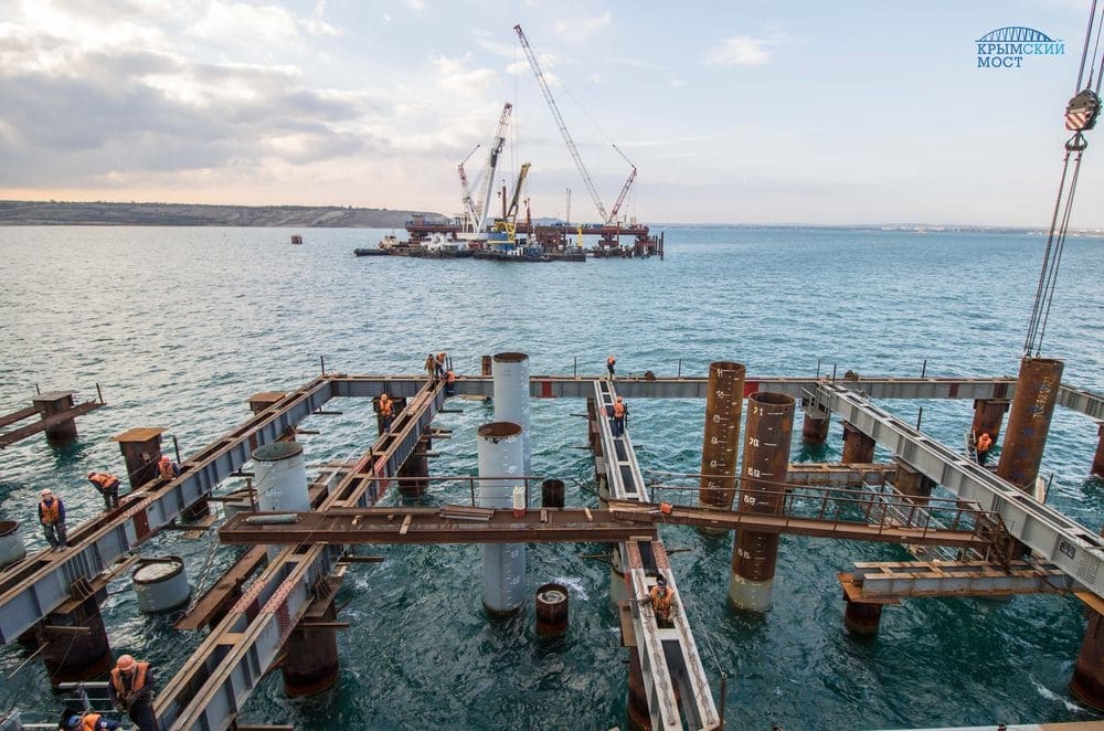 "Работы по строительству Крымского моста развернуты на всех 8 участках – как на автодорожной, так и на железнодорожной составляющих. Погружено более 2700 свай разного типа (в том числе 220 свай в акватории), готова 141 опора, в работе – еще более 140 опор (в том числе 25 опор в акватории, включая две фарватерные)", - заявили в компании.