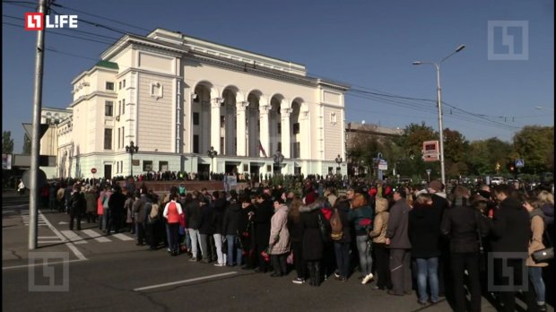 В театрі опери та балету ДНР люди стоять в черзі, аби попрощатись із вбитим терористом Арсеном Павловим, більш відомим як "Моторола".