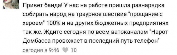 Так, в сети появляется все больше свидетельство о принудительных «приглашениях» дончан на траурное мероприятие. Многие жители города рассказали, что их попросту поставили перед фактом: нужно прийти, если дорога работа.