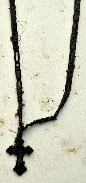 Кроме того, на клочках бумаги записи: «№ 01545 пушка» и список военнослужащих: «Карпюк А., Франчук С., Чалай Д., Мороз С., Пашковский Р., Нахамец А., Лавришин Б., Гузоватый Г., Литвинчук С., Линик Б., Ковальчук С., Калюжный Ю.». Часть записей была сделана рукой Олега Шванки, но совпадений по ДНК нет. Лицо, к сожалению, не опизнаваемо, однако на теле есть крестик на золотой цепочке, но без распятья. Не исключено, что этот погибший юридически даже похоронен. Но похоронили, скажем, какой-то фрагмент тела. А все тело осталось неидентифицированным (между прочим, до сих пор не переданных останков, которые надо подхоронить — более 15. И следственные органы не торопятся решить это дело).