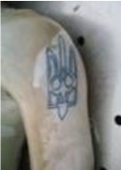 На шее на черном шнурке крестик белого металла. Но, что важно — у бойца на левом плече — тату в виде трезубца размером 12×5 см. С одной стороны, это мог быть погибший в первой половине мая 2015 года, но за то время среди наших боевых потерь нет пропавших без вести (по крайней мере, с такими признакам). Поэтому напрашивается вывод, что это мог быть погибший в более раннее время — например, во время боев за Донецкий аэропорт. Или вообще кто-то из казненных заключенных. И его тело длительное время хранилось в морге Донецка. Еще один вариант — погибший неизвестный донецкий партизан.