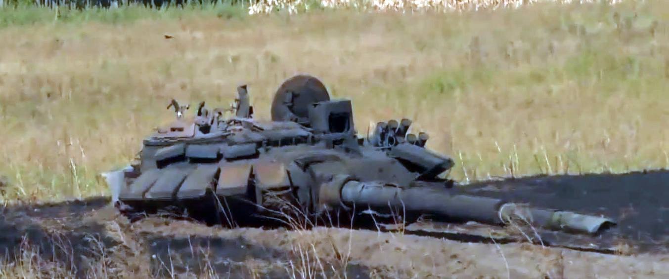 А вот еще одни результаты боев за Новосветловку - на фото номер 6 башня, отлетевшая в результате внутреннего взрыва танка Т-72БЗ - это новейшая модификация, которая поступила на вооружение армии Российской федерации в 2012 году. Результат работы украинских танкистов. Отличительная черта Т-72БЗ - на башне установлен новый прицел белорусского производства "Сосна-У". На фот 7 - Т-72БЗ захваченный украинскими войсками. Фото 8 - новейший российский БТР-82А - борт проломлен, скорее всего, также танковым снарядом.