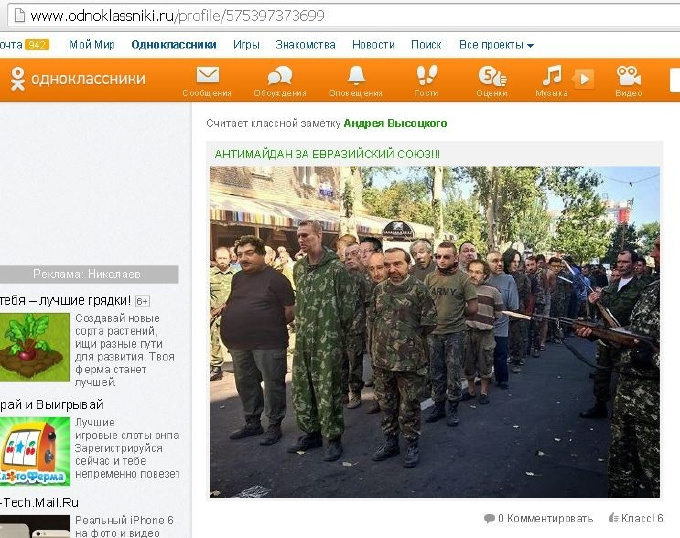 Кроме того, Масленников поддерживает действия российского президента Путина, который развязал войну на Донбассе. А также следит за новостями «Новороссии» и «лайкает» фото с парада военнопленных украинских солдат в Донецке и видео «илловайского котла», где россияне обстреляли силы АТО.