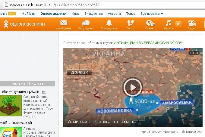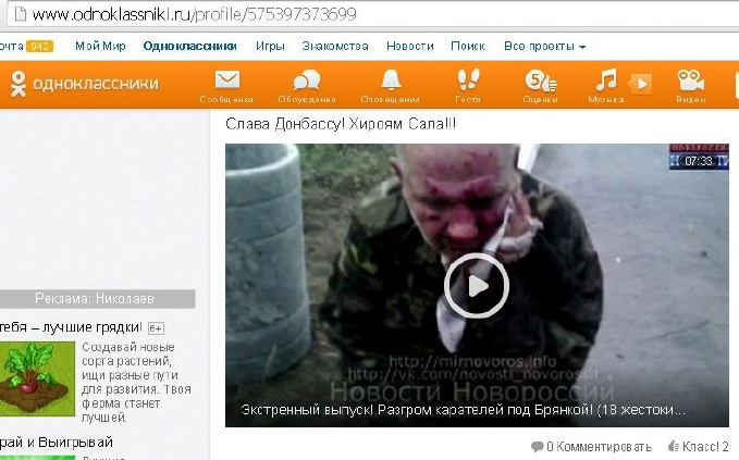Свои политические симпатии в этой войне офицер демонстрирует на своей странице в социальной сети Одноклассники.