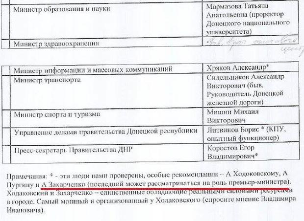 В списке значится и нынешний главарь самопровозглашенной ДНР Александр Захарченко. Примечательно, что изначально его предлагали Суркову в качестве "премьера" псевдореспублики.