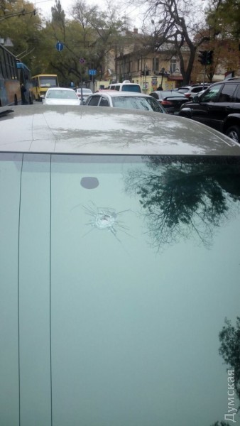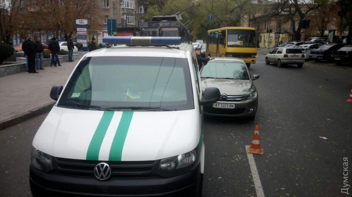 В центре Одессы расстреляли автомобиль «Ситроен», который врезался в машину инкассаторов