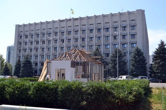 Эта в целом нормальная идея реализована в Одессе абсурдно и незаконно. Место для «Хаты» выбрали посреди клумбы у здания Одесской ОГА. Ее соорудили без единого разрешительного документа. В целом поражает цинизм человека, который считает возможным компенсировать проданные исторические помещения убогим незаконным курятником на клумбе…