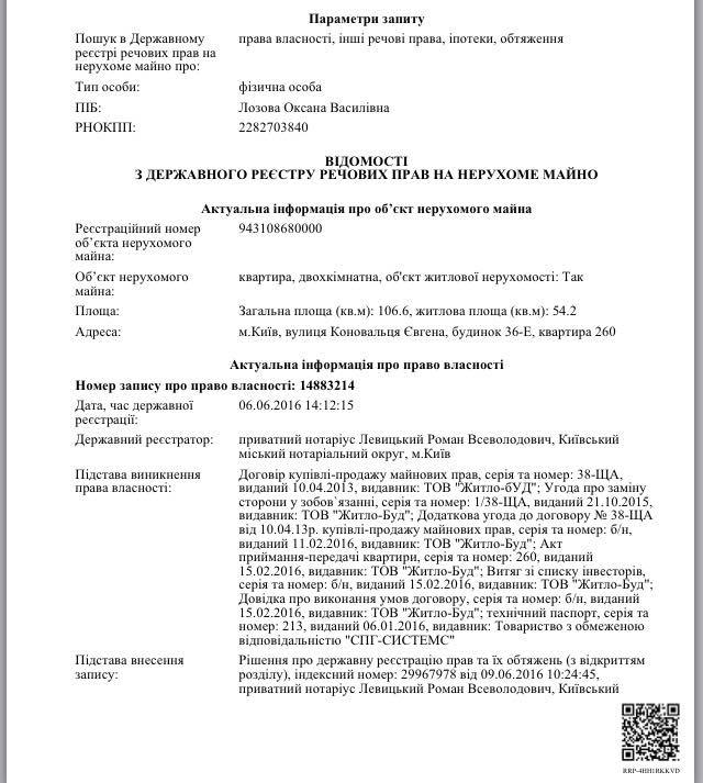 17 грудня 2014 року мамуся Оксана Лозова, яка працює лікарем (педіатр) купляє собі ще одну квартиру в місті Рівне, вул. Відінська, 5В, кв. 184.