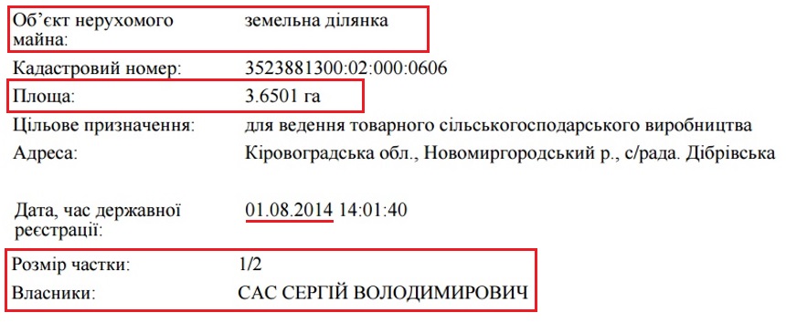 Государственный реестр имущественных прав на недвижимое имущество содержит информацию только о последнем достоянии С. Саса в 2014г., а именно ½ земельного участка площадью 3,65га.