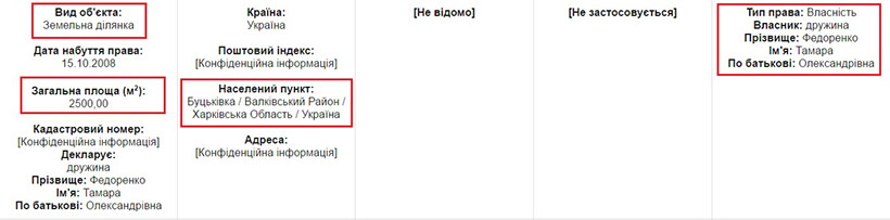 Жена Литвинова владеет лишь небольшим земельным участком в селе Галициновка Донецкой области.
