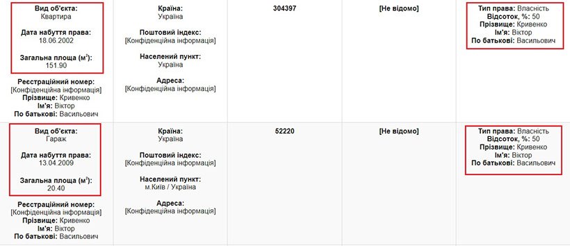 К сожалению, владельцев этих квартир мы установить не можем, поскольку Единый государственный реестр прав собственности на недвижимое имущество информацию относительно этих объектов не содержит. Вполне вероятно, что это и есть те квартиры, которые указаны в декларации господина Кривенко.