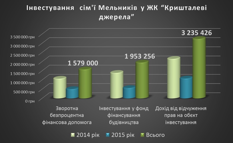 КСМ-Групп занимается, в частности, строительством скандально известного ЖК «Хрустальные источники». Средства на строительство этого ЖК привлекаются путем подписания договора уступки участия в фонде финансирования строительства. Скорее всего, именно в это строительство инвестирует заемные средства и жена судьи. Заказчиком данного строительства выступает Национальная Академия Наук Украины.