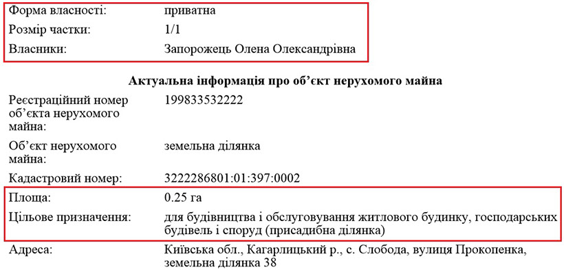 Жене господина Запорожца, Елене Александровне принадлежит земельный участок 0,25 га.
