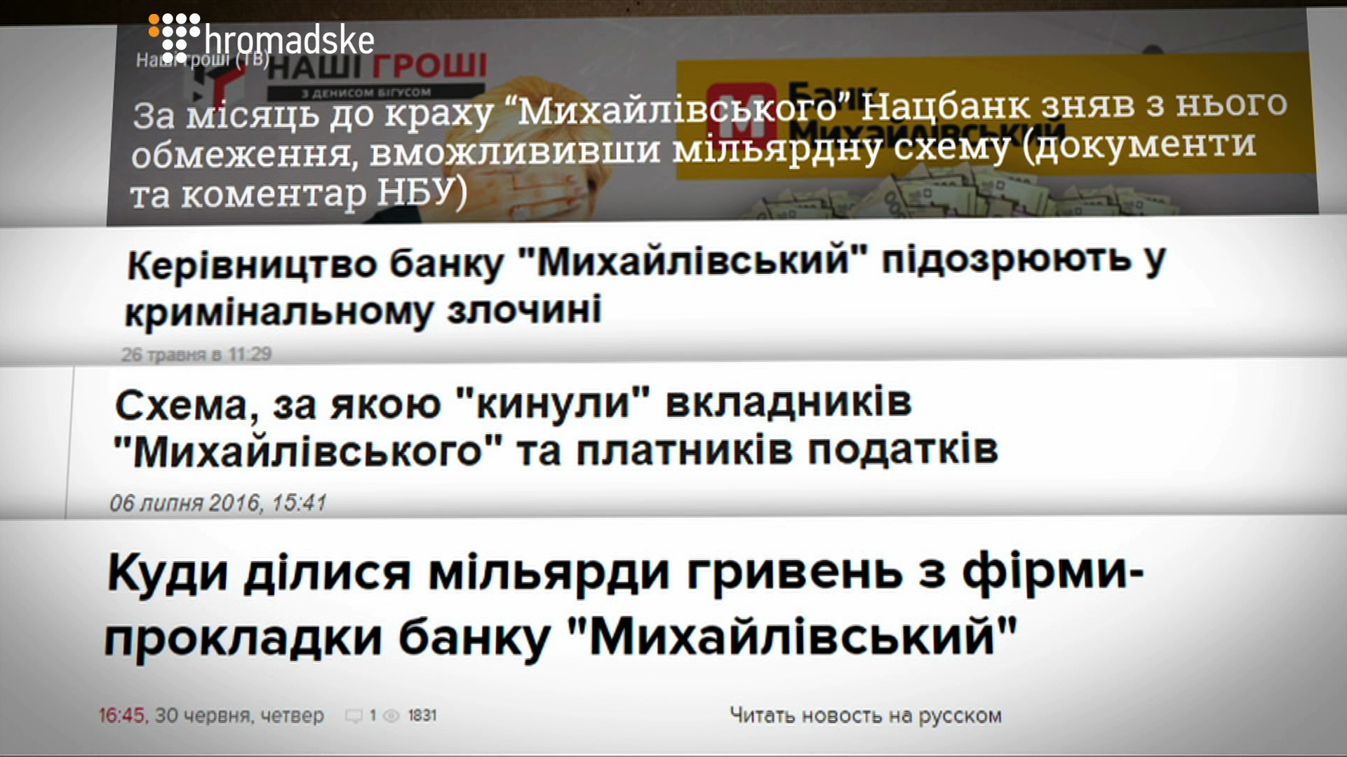Та історія з Михайлівським кардинально відрізняється від історії інших збанкрутілих банків. Клієнтів цієї установи надурили двічі. Перший раз – коли заявляли про надійність їхніх вкладів у банку. Другий – коли рекомендували вкладати гроші на ще вигідніших умовах – у пов’язній інвестиційній компанії.