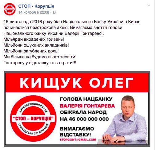 Сам паблік - https://www.facebook.com/stopkorup/ неіснуюча організація.