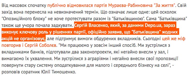 І тут дуже смішно виходить, бо з однієї сторони депутат Батьківщини з пабліка для вбросів зазиває на акції і репостить це собі на сторінки, а з іншої Власенко публічно відмовляється від цих мітингів