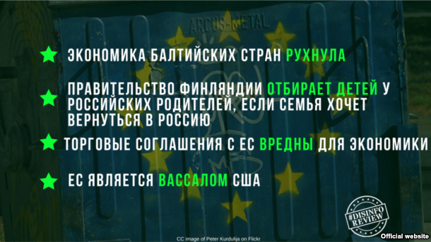 На прошлой неделе некоторые «любимые дезинформационные сюжеты» снова появились в прокремлевских СМИ. «Закат Европы», считают эксперты, стал главной темой: «Так, например, мы узнали, что экономика Балтийских стран уже рухнула. При этом никак не объяснялось, почему тогда граждане балтийских государств сравнительно довольны своим уровнем жизни».