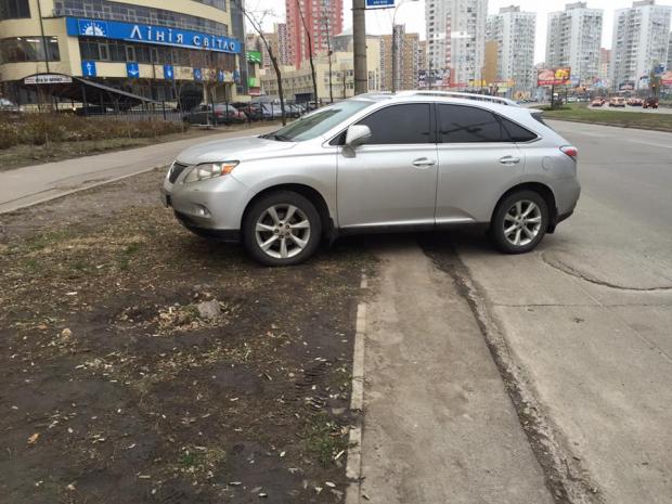 У Києві водій автомобіля Lexus порушив правила паркування і поставив своє авто прямо на газоні. Про це написав у Facebook адвокат Олексій Шевчук