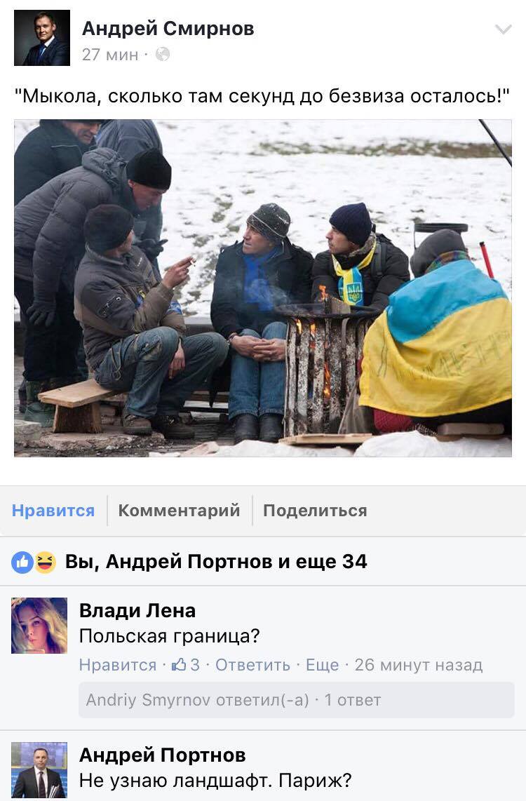 По этому поводу социальные сети наполнились потоками шуток и троллинга. Политолог Михаил Павлив иронизизирует по поводу наступления безвизового режима.