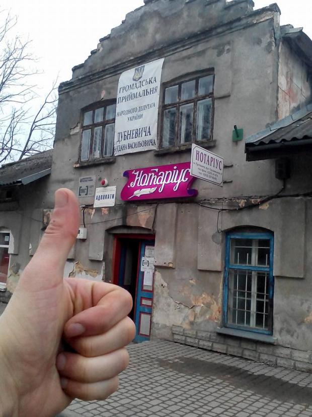 Громадський активіст зі Львова Олег Панас опублікував на своїй Facebook-сторінці фото будівлі, в якій знаходиться приймальня депутата Верховної Ради України Богдана Дубневича