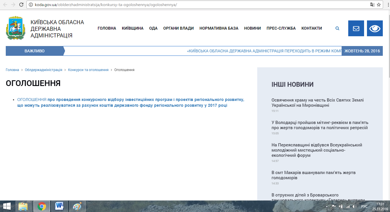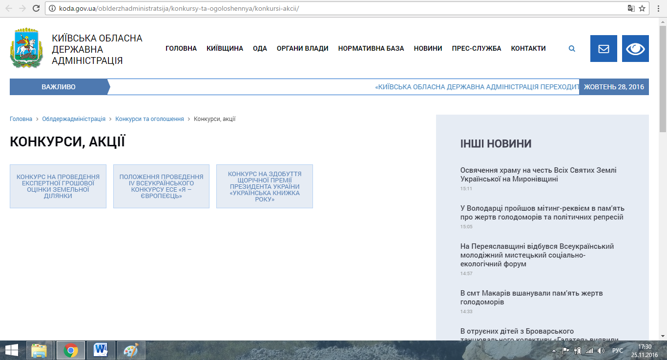По состоянию на 17:30 25 ноября на официальном сайте КОГА в разделах: “Конкурсы и объявления”, и “Новости” список претендентов на посты вице-губернаторов Киевщины так и не появился.