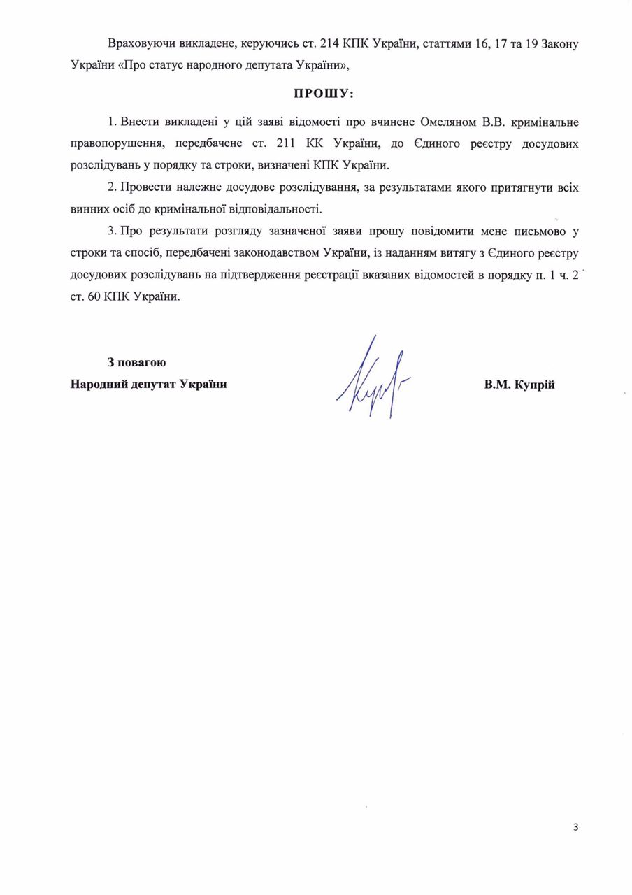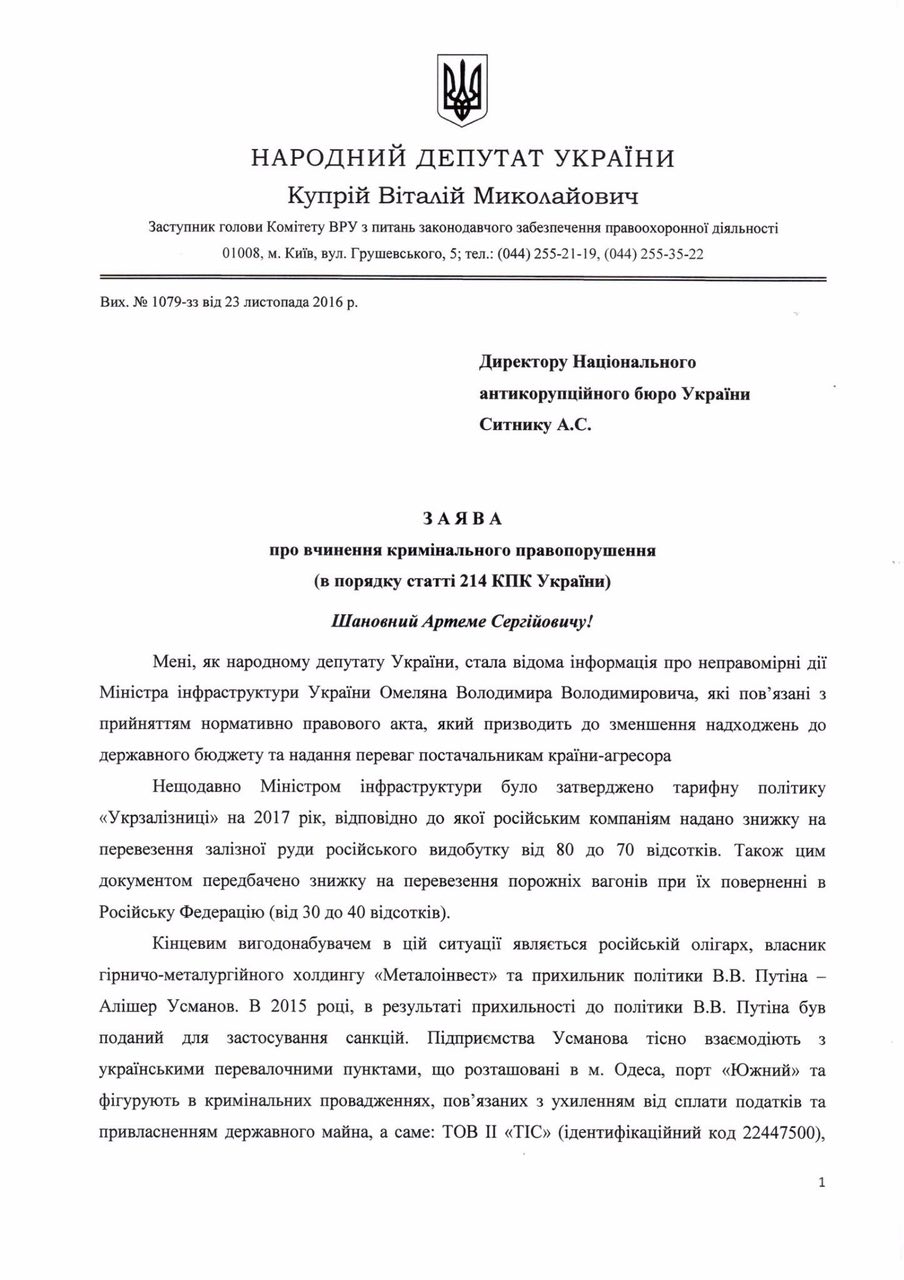 «Коррупционные сделки, связанные с этой компанией и с портом «Южный», настолько масштабные, что чиновникам, которые сейчас это покрывают, нужно подумать, как они будут защищаться, когда правоохранительные органы предъявят чиновникам обвинения в коррупции и превышении служебных полномочий, повлёкших ущерб и убытки госпредприятий. Однозначно, суммы убытков, нанесенных такими решениями, достигают уже сотен миллионов долларов. Я встречался с директором НАБУ Артемом Сытником и дополнительно поднимал этот вопрос. Я думаю, что Омеляну нужно сушить сухари», - отметил внефракционный нардеп Виталий Куприй.