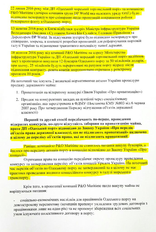За десять лет эти буксиры принесут прибыль порту 150 миллионов долларов, т.е. предложенные псевдоинвесторами 50 миллионов порт заработает сам всего за 3 года с небольшим. Ущерб госпредприятия от такой продажи составит 100 миллионов долларов. Кроме этого, потенциальный покупатель хочет получить как минимум в течение 10 лет аренду места на причале, удобные служебные помещения и мастерские, а также исключительное право на предоставление всех морских услуг в порту. Несмотря на всю очевидную невыгодность сделки для государства, и даже ущерб от нее, Омелян дает приватизации «зеленый свет».