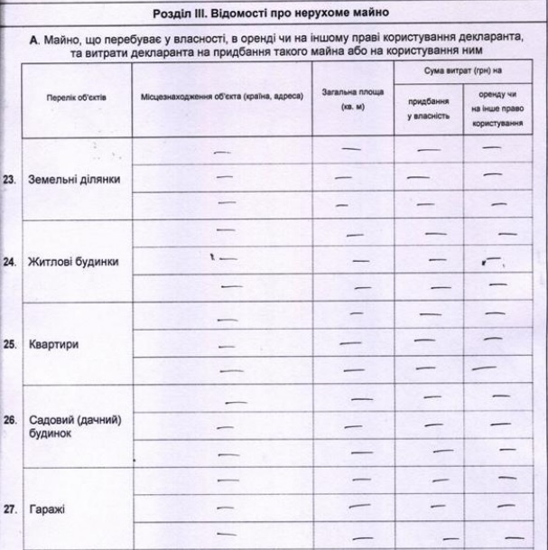 В декларации за 2014 год также не значится никакого движимого или недвижимого имущества судьи.