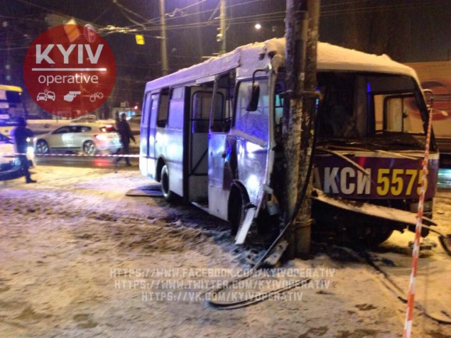 В Киеве маршрутка сбила двух пешеходов и врезалась в столб