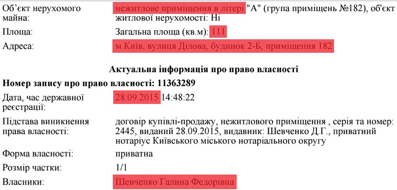 Але має заступник голови апеляційного суду Київської області Олександр Шевченко ще й заможну... матір, яка у вересні минулого року придбала нежитлове приміщення площею 111м² в найдорожчому Печерському районі Києва, буквально в 300м. від НСК «Олімпійський».