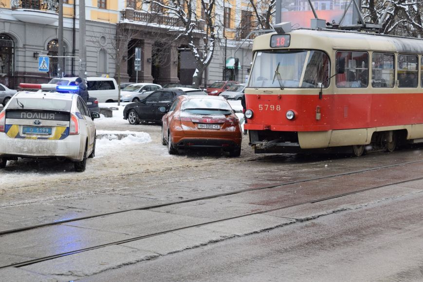 В Подольском районе Киева девушка-водитель припарковала авто, парализовав движение 8 трамваев.