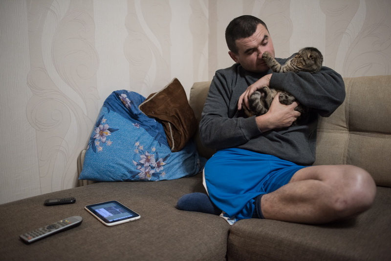 Дочь сидит в углу комнаты и внимательно смотрит на отца. Готов кофе. Перебираемся на кухню. Саша рассказывает о реабилитации и волонтерах, которые помогли с поездкой в Австрию, где он заново учился ходить. Говорит: именно там решил возвращаться на фронт. Хотя врачи и предупреждали, что передвигаться он если и сможет с такой высокой ампутацией, то только с помощью палки. Рассказывает, что оставлял ее во время передислокаций несколько раз, но побратимы постоянно возвращали. Во время второй поездки в тяжелые бои Александр не попадал, весной 2016-го уже был дома. Сейчас занимается волонтерством, мечтает о машине. Помогает с ремонтом боевых авто.