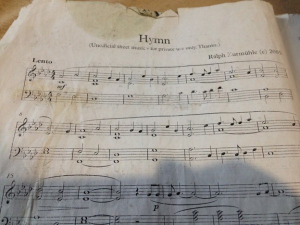 ... Начались бои на Грушевского, мы в масках бегаем, там гранаты, газ, копоть, с ног валишься от усталости, а все равно не мог не играть, приходил и играл. По ночам, если я не играл, то слушал музыку в интернете, тогда одна композиция тронула до слез, стал искать ноты. Нот не нашли, нашли композитора...